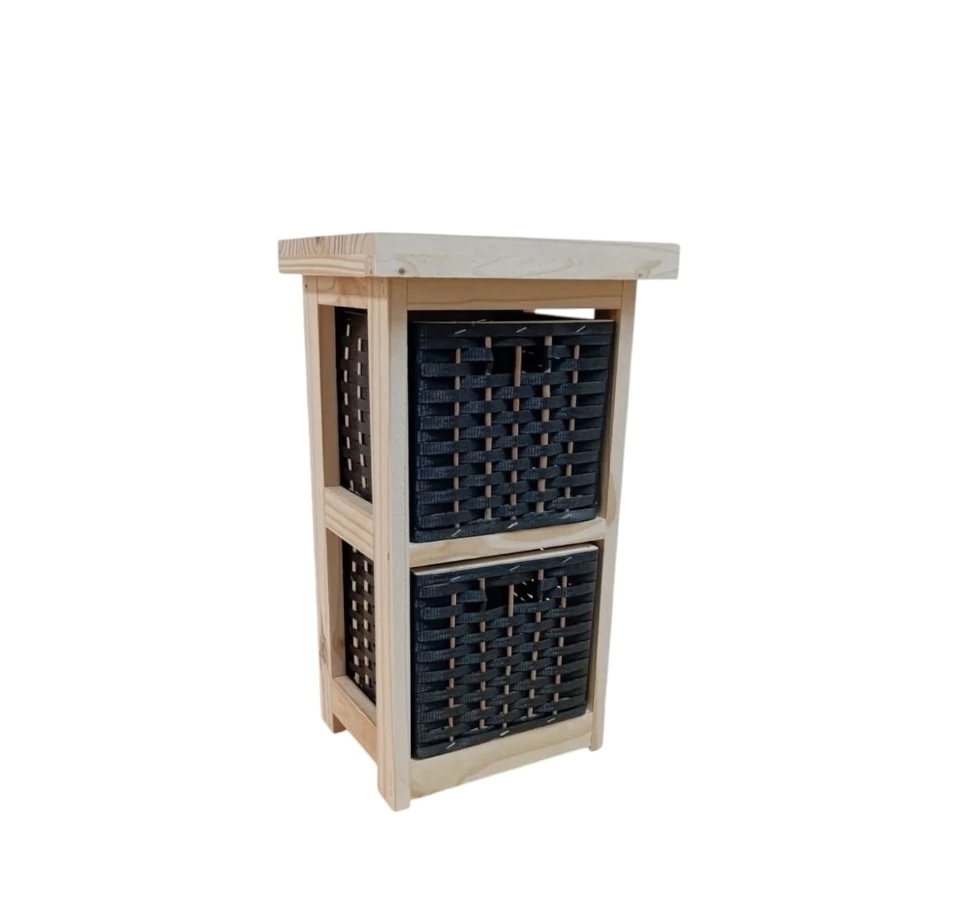 Canasteros de pino con canastos de plastico