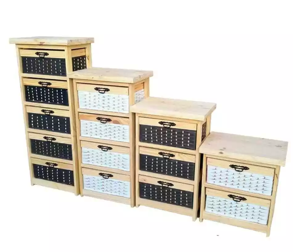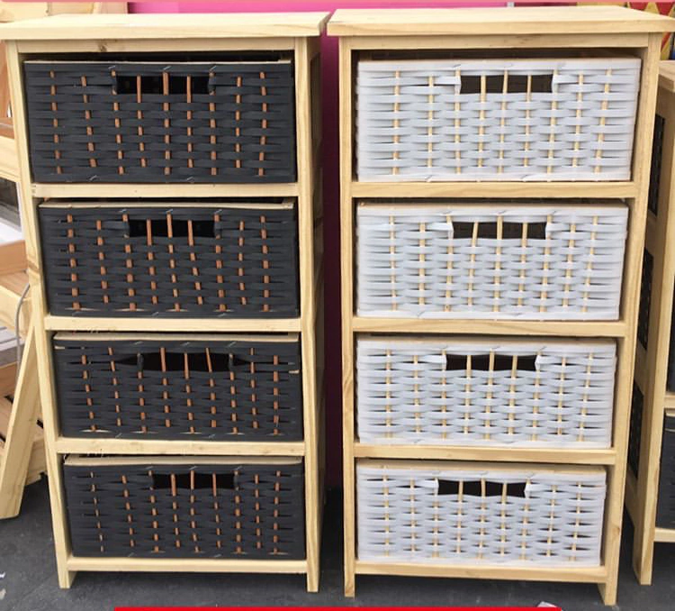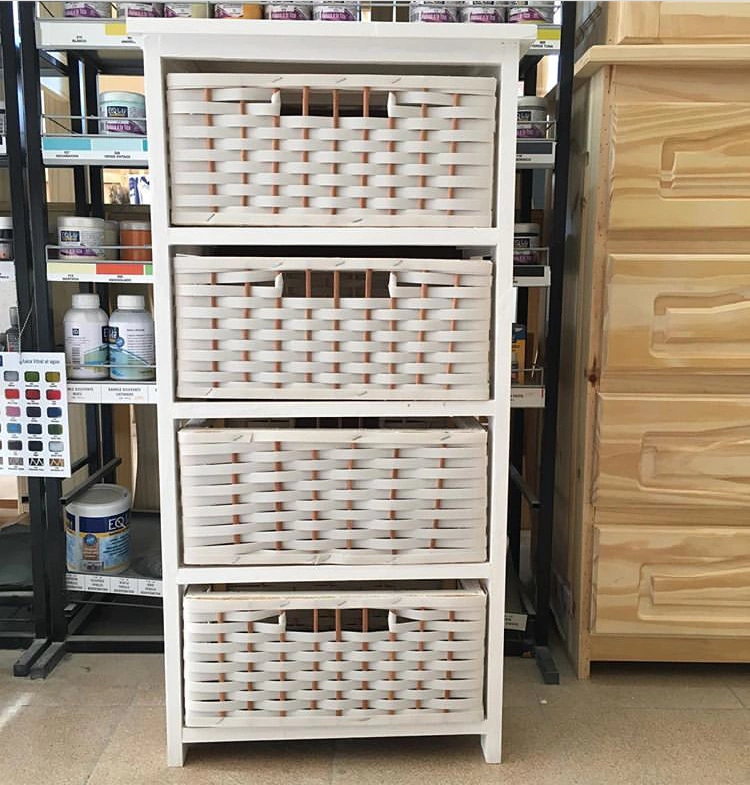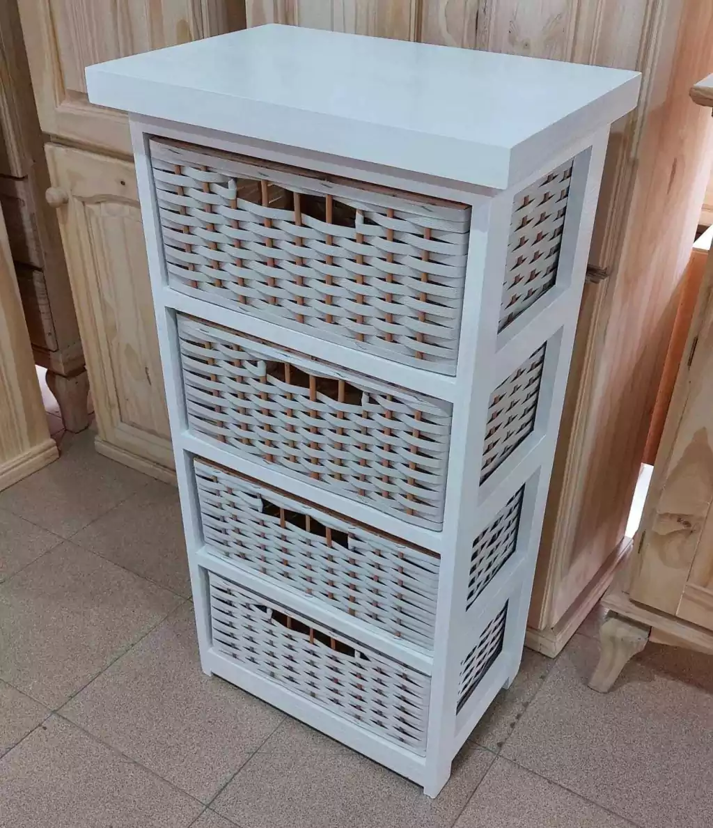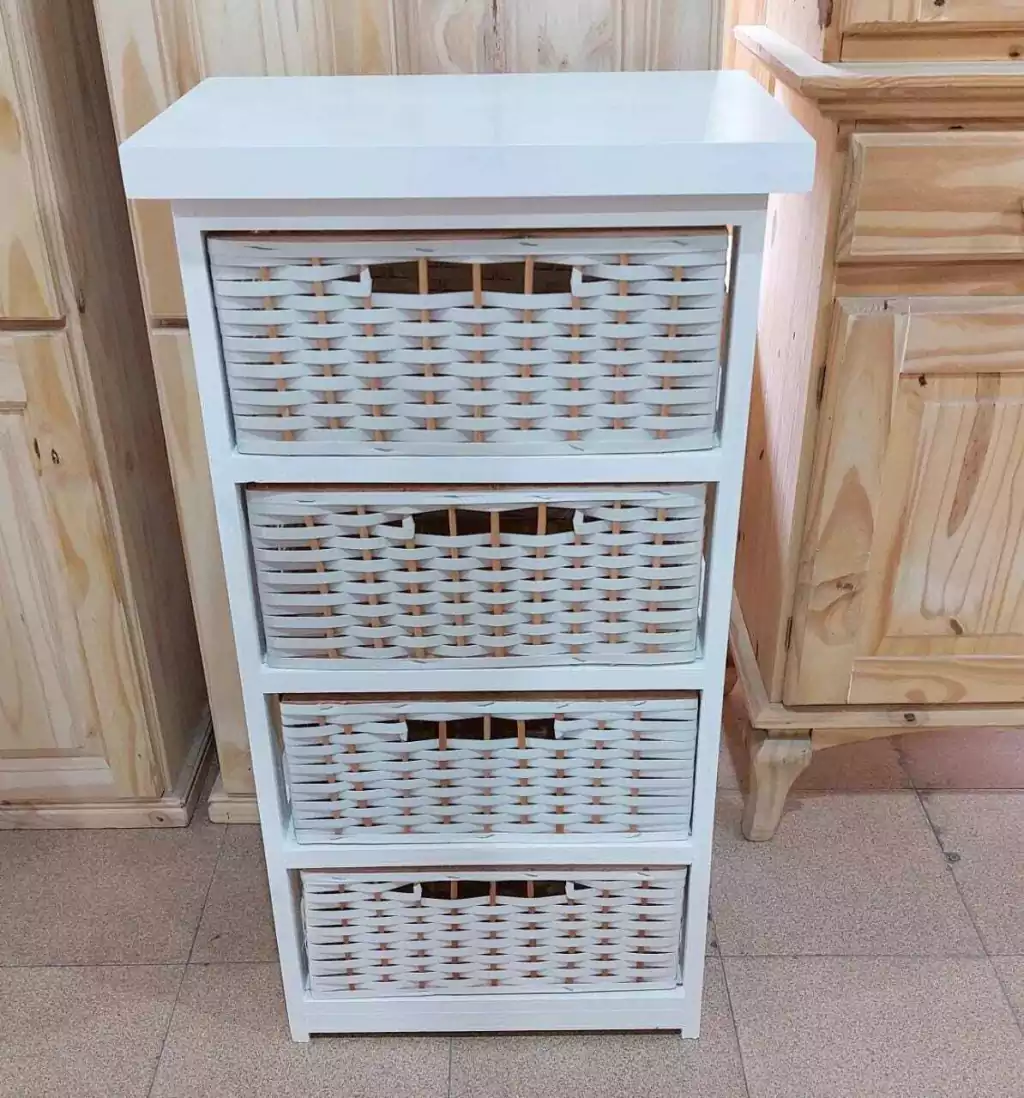 Canasteros de pino con canastos de plastico